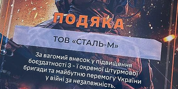 Компанія “Сталь-М” отримала подяку від Третьої штурмової бригади Збройних Сил України.